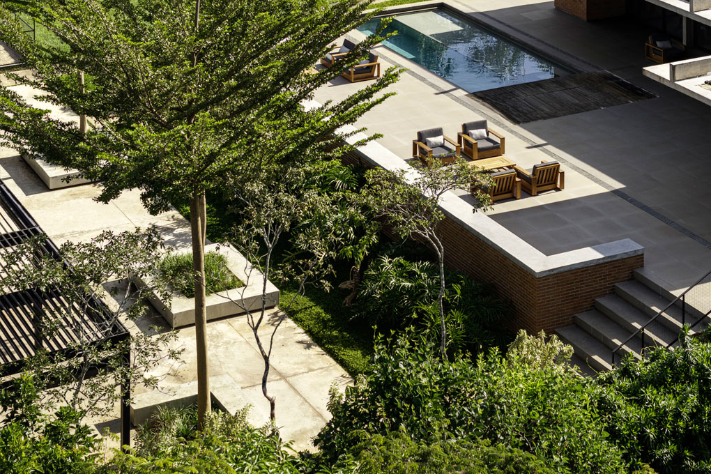 O mesmo piso reveste todos os ambientes internos, externos e piscina. Todos os móveis, objetos e obras de arte foram trazidos da antiga casa dos moradores.