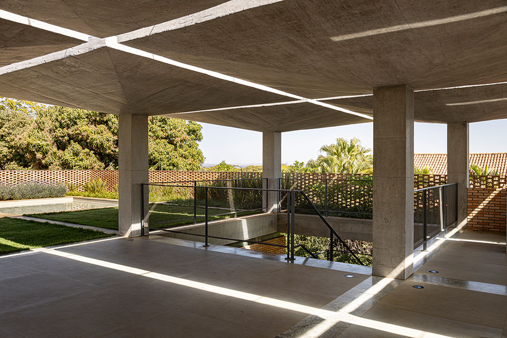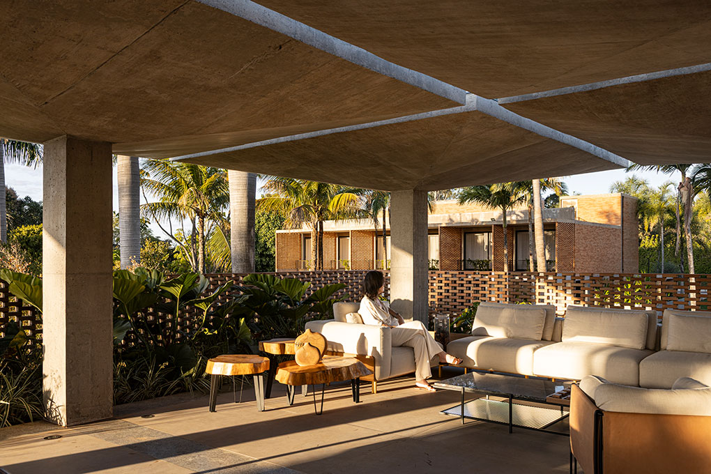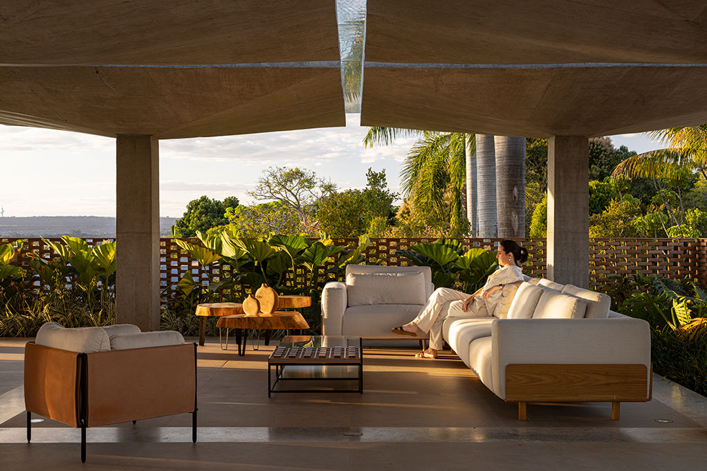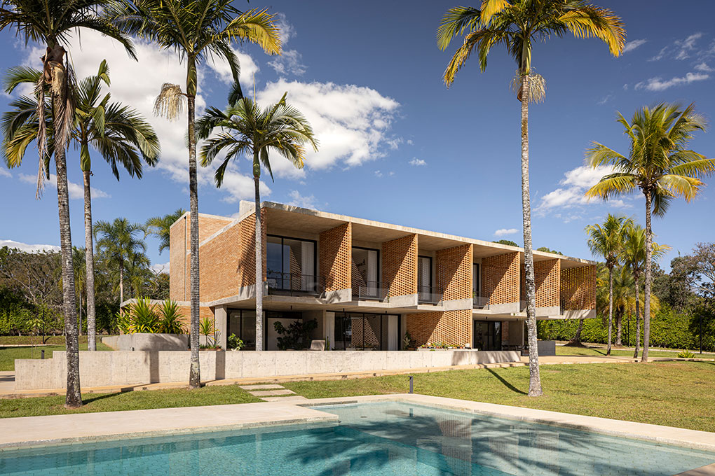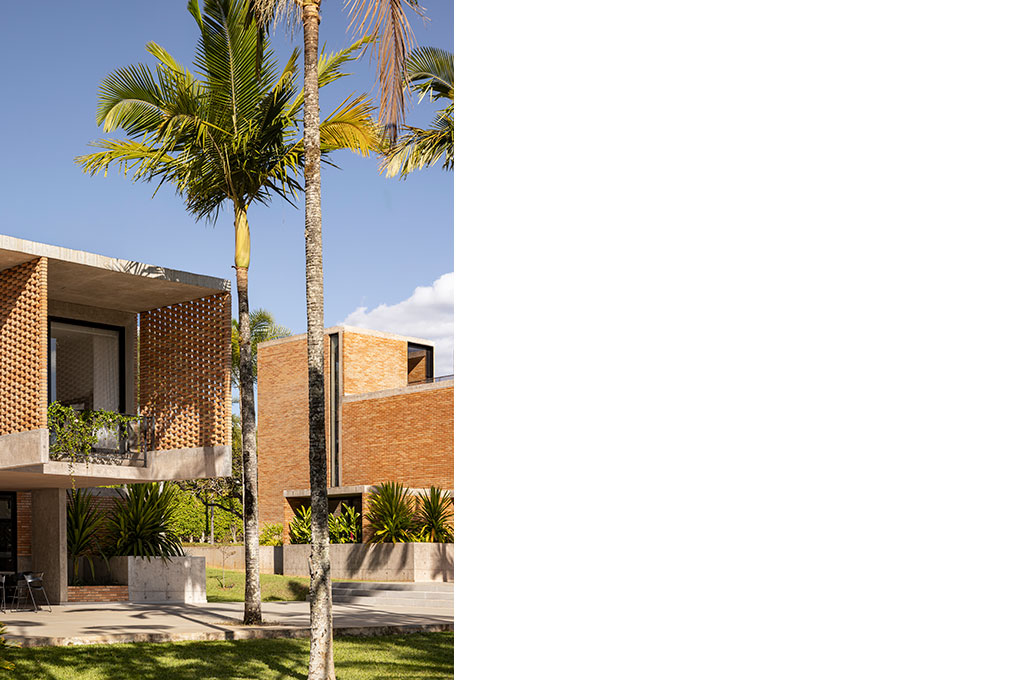 Localizado em um terreno de 20.000 m² no Lago Sul, em Brasília, o condomínio foi projetado para uma mesma família, composta pelos pais e seus quatro filhos, que desejavam coabitar o espaço de forma independente, mas integrada. O desafio foi acomodar cinco famílias e uma edificação de apoio em apenas quatro parcelas permitidas pela norma, sem cercas ou divisões físicas.