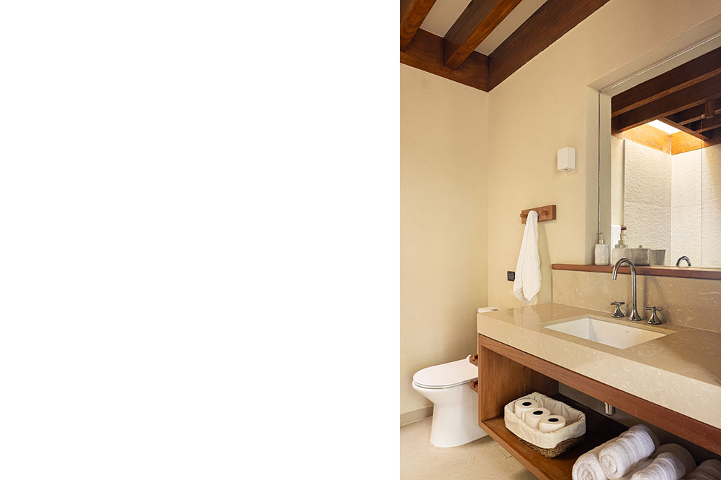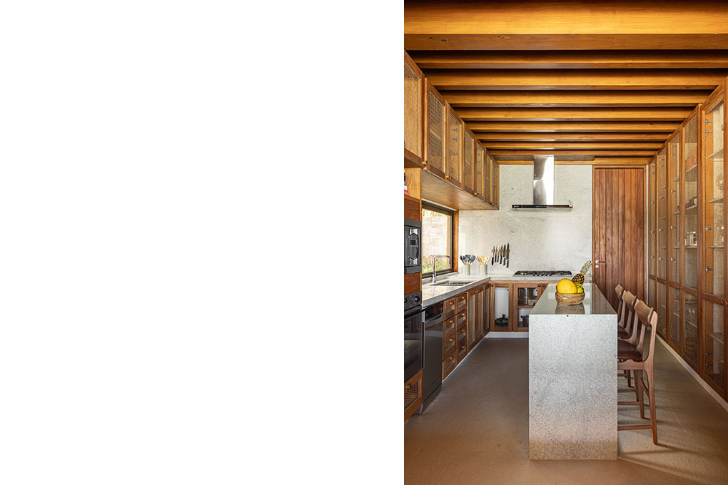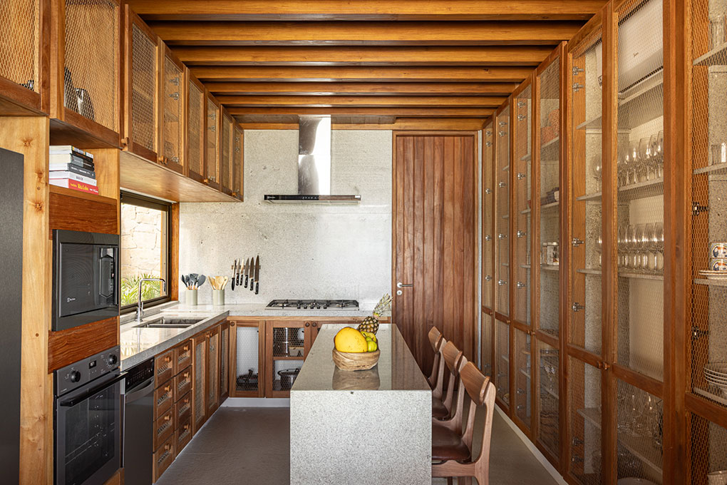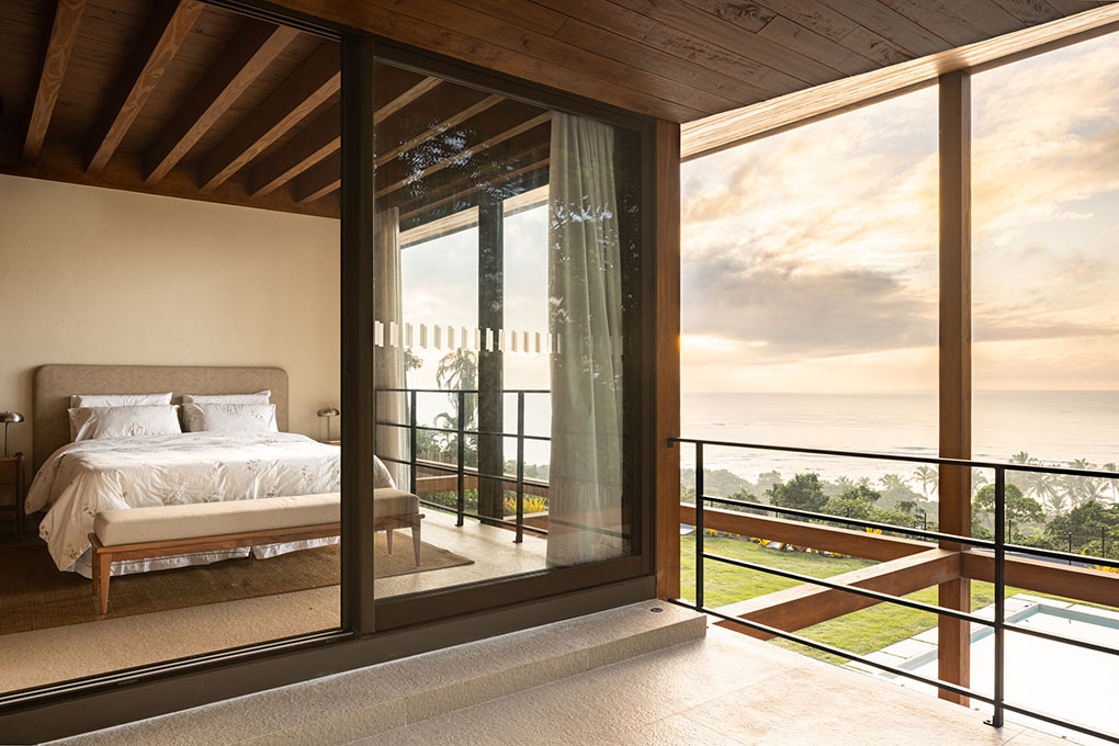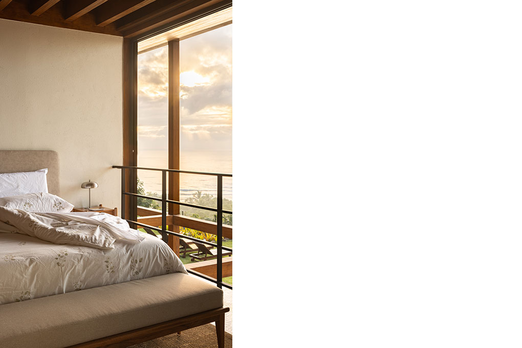Implantada no alto de um talude de 15 metros, a casa fica próxima à praia de Itapororoca, em Trancoso, no sul da Bahia, Brasil, uma região de Mata Atlântica e com clima tropical úmido. Aproveitando a topografia natural, a implantação elevada proporciona vistas privilegiadas do mar e favorece a ventilação cruzada, reduzindo a necessidade de sistemas artificiais de climatização.