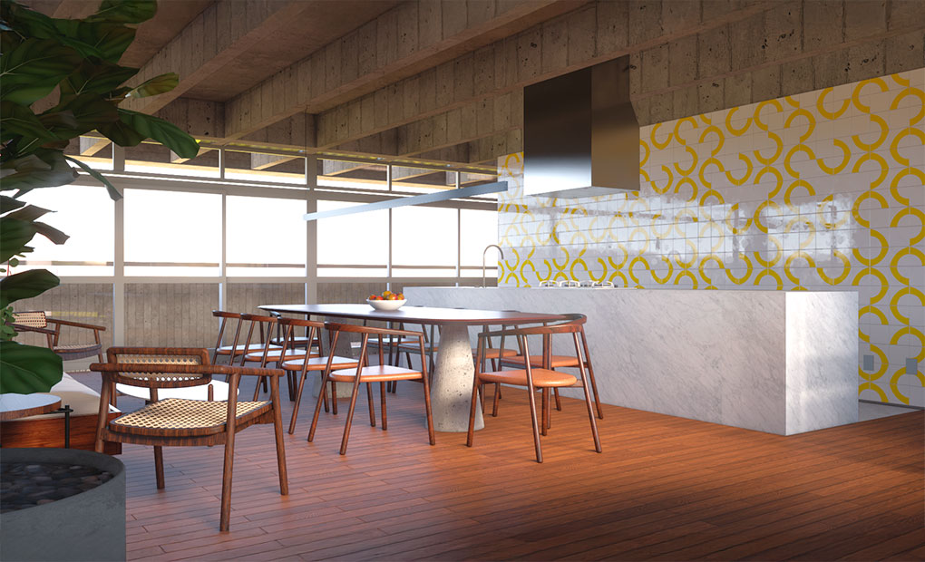 Projeto de retrofit para a cobertura coletiva do Edifício Genève, localizado na SQS 203, em Brasília. Trata-se do edifício com o maior número de trabalhos do artista Athos Bulcão.